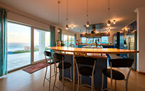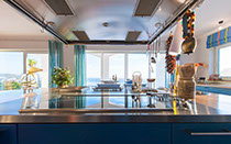 A separate Bulthaup kitchen fitted with a Gaggenau microwave unit (with warming, cooking, defrosting and grilling function); Gaggenau oven with pyrolytic cleaning and pizza stone; Miele coffee machine; Bosch fridge/freezer combination; double sink. The kitchen island contains a Gaggenau ceramic electric cooktop; Gaggenau steamer; Gaggenau three-plate electric hob; double sink; and Gutmann extractor fan.
