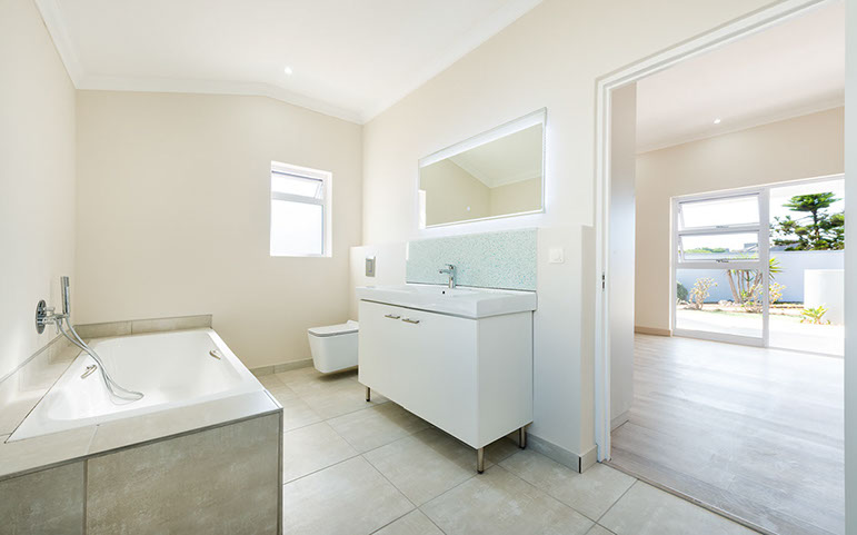 • Sunrise-facing main bedroom featuring an airy en-suite bathroom with bath and shower, plus a garden veranda